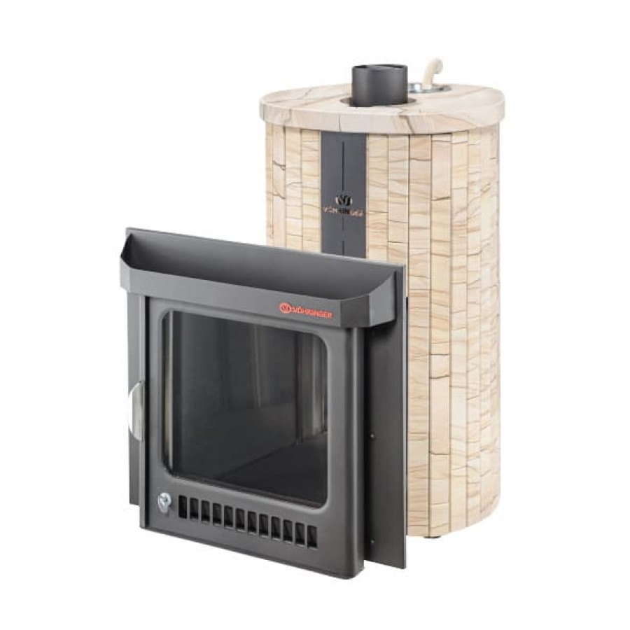 Печи VÖHRINGER с дровяной каменкой, у которой вся топка окружена большой массой камней, сильно разогревается, а дров уходит немного, благодаря полному сжиганию дымовых газов с помощью бокового и верхнего горения. Использование эффекта «Vortex», позволяет извлечь всю энергию и направить её на нагрев большого количества камней.