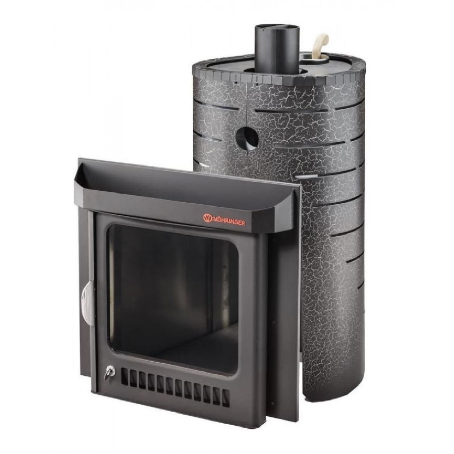Печи VÖHRINGER с дровяной каменкой, у которой вся топка окруженабольшой массой камней, сильно разогревается, а дров уходит немного,благодаря полному сжиганию дымовых газов с помощью бокового и верхнегогорения. Использование эффекта «Vortex», позволяет извлечь всю энергию инаправить её на нагрев большого количества камней.