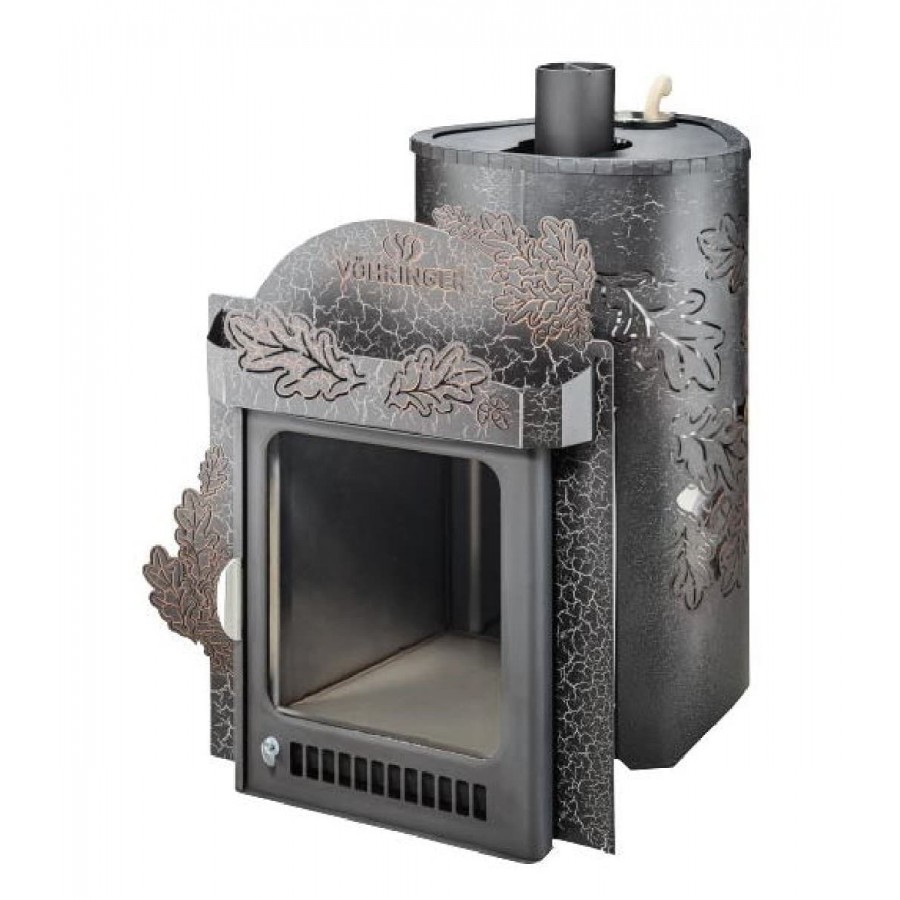 Печи VÖHRINGER с дровяной каменкой, у которой вся топка окруженабольшой массой камней, сильно разогревается, а дров уходит немного,благодаря полному сжиганию дымовых газов с помощью бокового и верхнегогорения. Использование эффекта «Vortex», позволяет извлечь всю энергию инаправить её на нагрев большого количества камней.