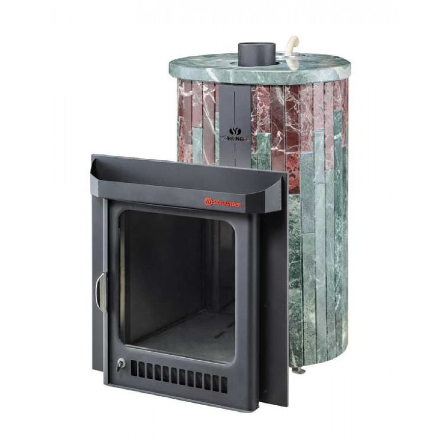 Печи VÖHRINGER с дровяной каменкой, у которой вся топка окружена большой массой камней, сильно разогревается, а дров уходит немного, благодаря полному сжиганию дымовых газов с помощью бокового и верхнего горения. Использование эффекта «Vortex», позволяет извлечь всю энергию и направить её на нагрев большого количества камней.