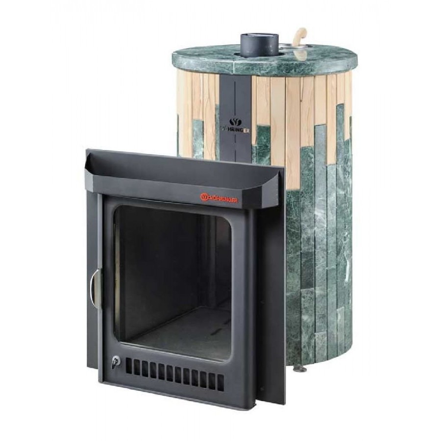 Печи VÖHRINGER с дровяной каменкой, у которой вся топка окружена большой массой камней, сильно разогревается, а дров уходит немного, благодаря полному сжиганию дымовых газов с помощью бокового и верхнего горения. Использование эффекта «Vortex», позволяет извлечь всю энергию и направить её на нагрев большого количества камней.