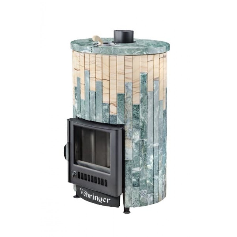 Печи VÖHRINGER с дровяной каменкой, у которой вся топка окружена большой массой камней, сильно разогревается, а дров уходит немного, благодаря полному сжиганию дымовых газов с помощью бокового и верхнего горения. Использование эффекта «Vortex», позволяет извлечь всю энергию и направить её на нагрев большого количества камней.