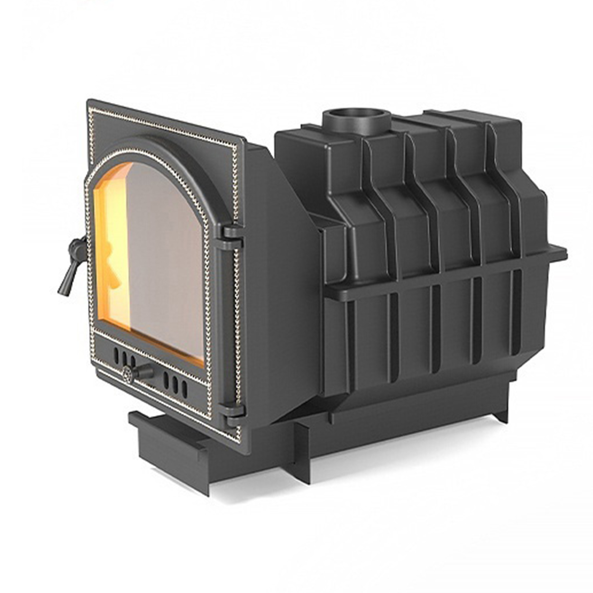 24 Банная Чугунная печь ЛЕГЕНДА Ретро 24 (205) укомплектована чугунной дверцей каминного типа с жаропрочным стеклом «SCHOTT ROBAX» и системой очистки стекла. Возможна внешняя облицовка с обязательным конвекционным зазором или установка конвекционной сетки с наполнением камнями.