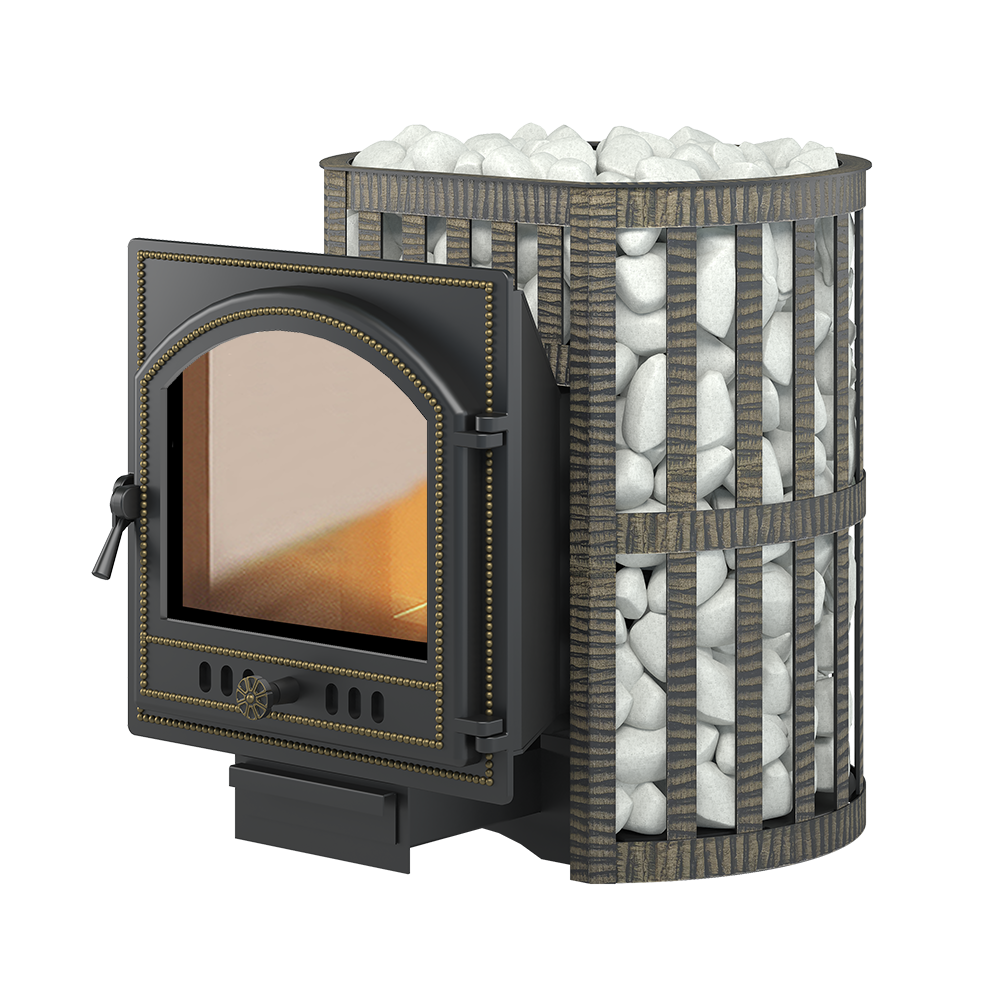 Банная чугунная печь Легенда Ковка 22 (205) укомплектована чугунной герметичной дверцей Везувий 205 с жаропрочным стеклом «SCHOTT ROBAX». Конвекционно-вентилируемый кожух "Ковка" изготовлен из металлической текстурированной полосы покрашенной термостойкой краской и покрытая патиной «Бронза».