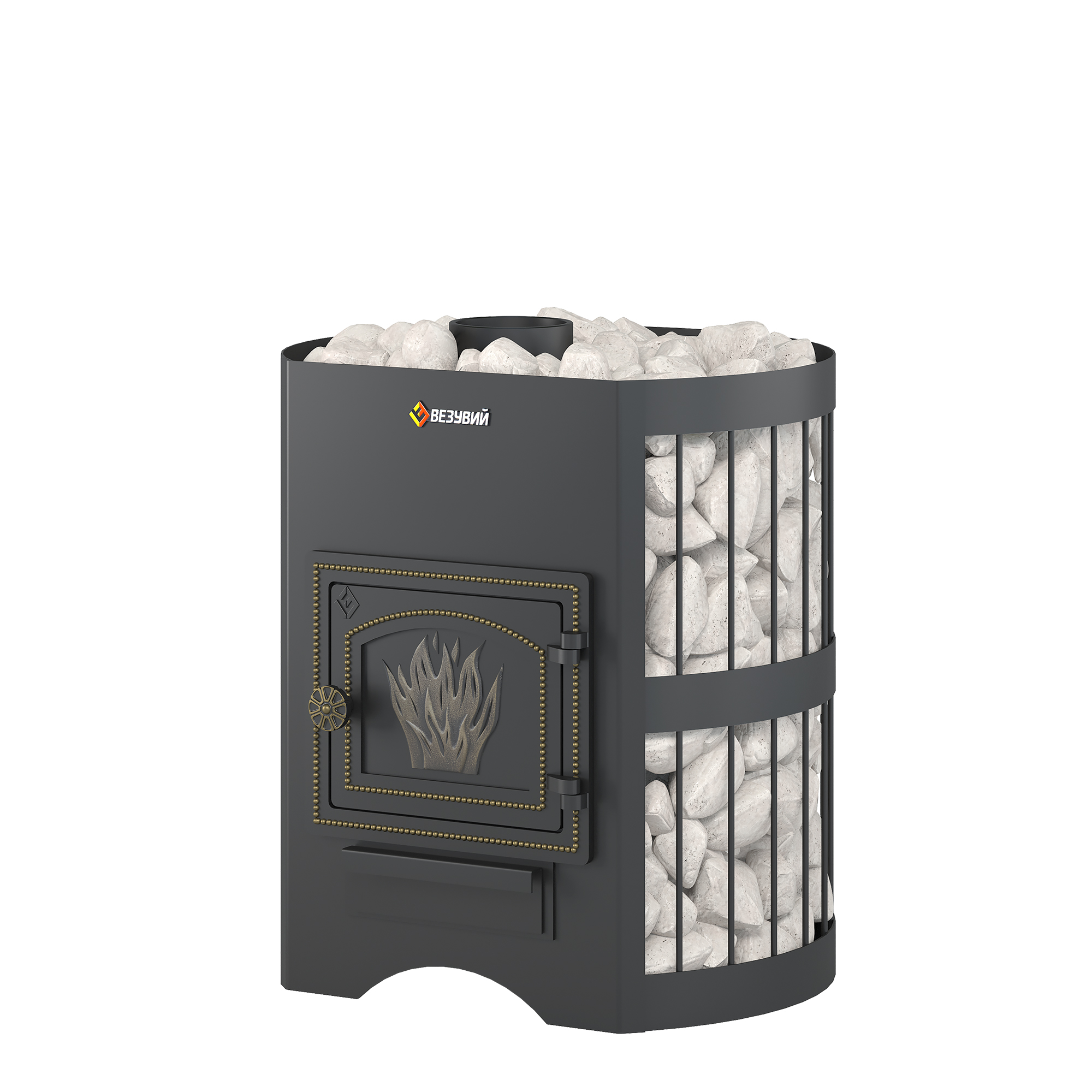 Банная печь Везувий Скиф Стандарт 12 (ДТ-3) Б/В - печь для парной с объемом от 6 до 14 м.куб. Печь-сетка с большой загрузкой камней, что позволяет надолго сохранять тепло после угасания огня в топке печи, также камни экранируют инфракрасное излучение исходящее от раскаленной топки печи. В конструкции данной печи не предусмотрен топочный тоннель, что позволяет топить её прямо из парильного помещения.