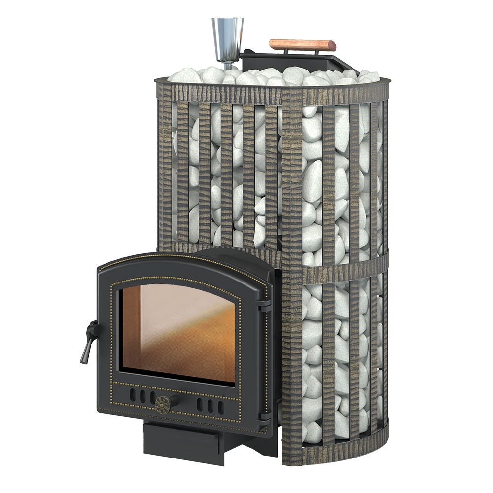Банная чугунная печь Ураган Ковка 28 (224) укомплектована чугунной герметичной дверцей Везувий 224. Закрытая каменка изготовлена из стали и вмещает в себя не менее 60 кг камней. Конвекционно-вентилируемый кожух "Ковка" изготовлен из металлической текстурированной полосы, покрашенной термостойкой краской и покрытая патиной «Бронза».
