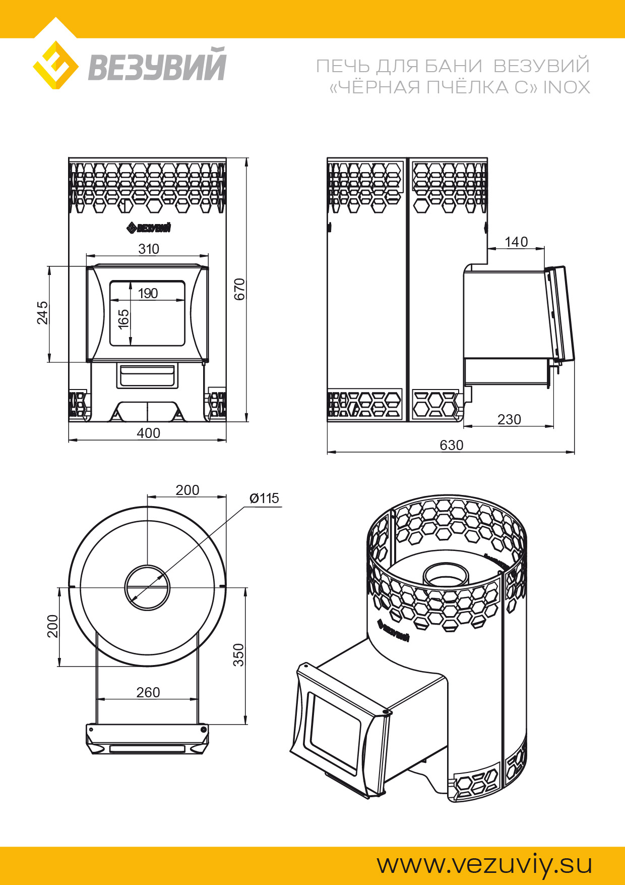 Печь для бани Везувий "Чёрная Пчёлка С" INOX