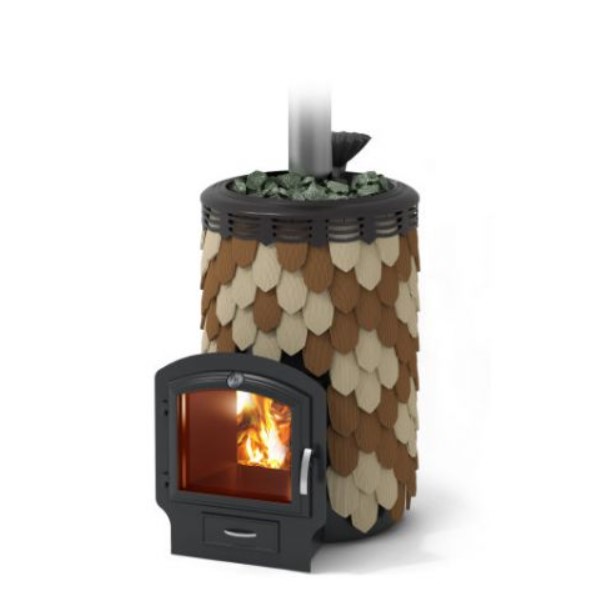 Печь для бани ТМФ Альфа Панголина Лайт Inox отличается оригинальным внешним видом и способностью давать удивительно мягкий, приятный жар. Обоими этими способностями она обязана наличию облицовки, выполненной из небольших керамических изразцов. Создавая эту облицовку, разработчики ориентировались на пример древнего животного под названием «панголин», откуда и происходит название модели. Керамические чешуйки имеют терракотовый цвет, что создает эффект тепла и комфорта, способствует расслаблению и помогает психологически настроиться на отдых.