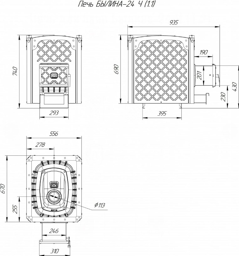 Чугунная печь для бани Теплодар Былина 24 Ч (1.2.)