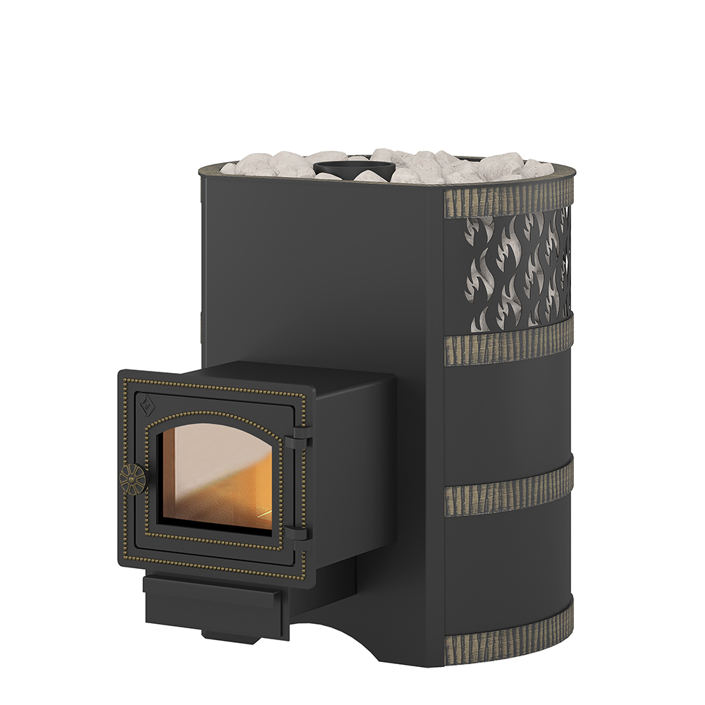 Топка печи изготовлена из особо прочной котловой стали марки 09Г2С. Толщина верхней и задней части 6 мм, толщина боковых стенок 4 мм. Топка имеет скошенные углы в нижней части боковых стенок топки. Такая конструкция облегчает уход за топкой, предотвращает высокую тепловую нагрузку на боковые стенки печи и обеспечивает дополнительную жёсткость стенок. Вместе с тем, данная конструкция стенок предполагает направление дров ближе к колосниковой решётке, что обеспечивает полное прогорание топлива.