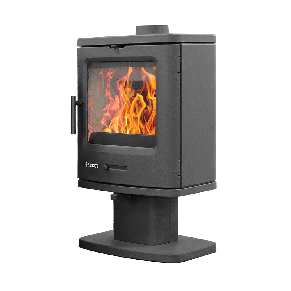 Компактная, стильная и мощная новинка от компании Everest. Печь-камин изготовлена из качественного жаростойкого чугуна ГОСТ 141285 с толщиной стенок 6-8 мм. Модель мощностью 7 кВт, рассчитана на обогрев помещений объёмом до 140 м³. Печь-камин имеет вермикулитовый пламегаситель. На чугунной дверке предусмотрена ручка с регулировкой силы прижатия. Топка усилена вермикулитовыми плитами с системой двухуровневого вторичного дожига. С помощью этой функции по специальному каналу поступает воздух, который нагревается при прохождении между топочной камерой и задней стенкой корпуса. Далее нагретый воздух через дефлектор поступает в топку, перемешивается с газами - продуктами горения, чем вызывает повторное возгорание. Регулировка этой системы, осуществляется заслонкой, расположенной в нижней части печи-камина. Регулировка подачи воздуха в колосниковую зону осуществляется заслонкой, расположенной на двери. В верхней части расположена ручка регулировки системы чистое стекло, которая помогает оставаться стеклу чистым отсекая сажу и копоть воздухом, подаваемым с верхней части топки. Патрубок дымохода Ø 120 мм – универсальный, со сменным положением. Он может быть установлен сверху или сзади в зависимости от размещения печи в помещении.