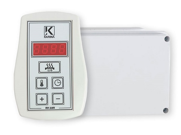Электрические печи для сауны используются совместно с цифровым пультом управления. Пульт KARINA Slim CS18 с выносным силовым блоком. Используется для электрокаменок, мощность которых не превышает 18 кВт.