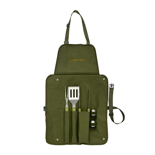 Комплектность: Сумка-фартук, вилка, лопатка, щипцы, солонка, перечница.