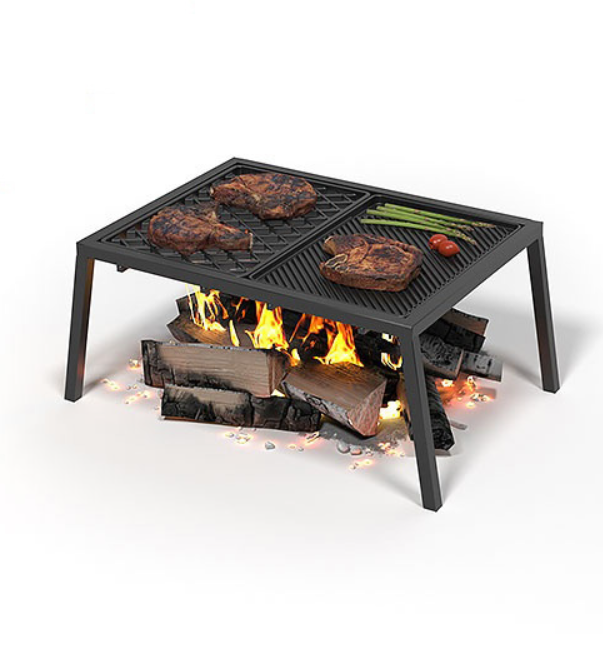 Подставка устанавливается над костром, на ней размещаются плиты и, пожалуйста! Можно готовить не только шашлык, но и куда более серьёзные кулинарные шедевры.