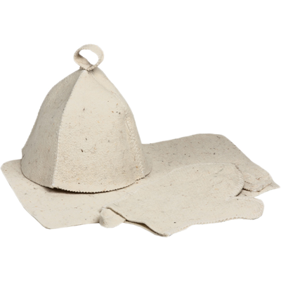 В набор входит: шапка для бани и сауны которая защитит голову от высоких температур в парном помещении, рукавица для бани предохранит руку при поддавании воды на раскаленные камни, коврик для бани позволит сесть на горячие полки.