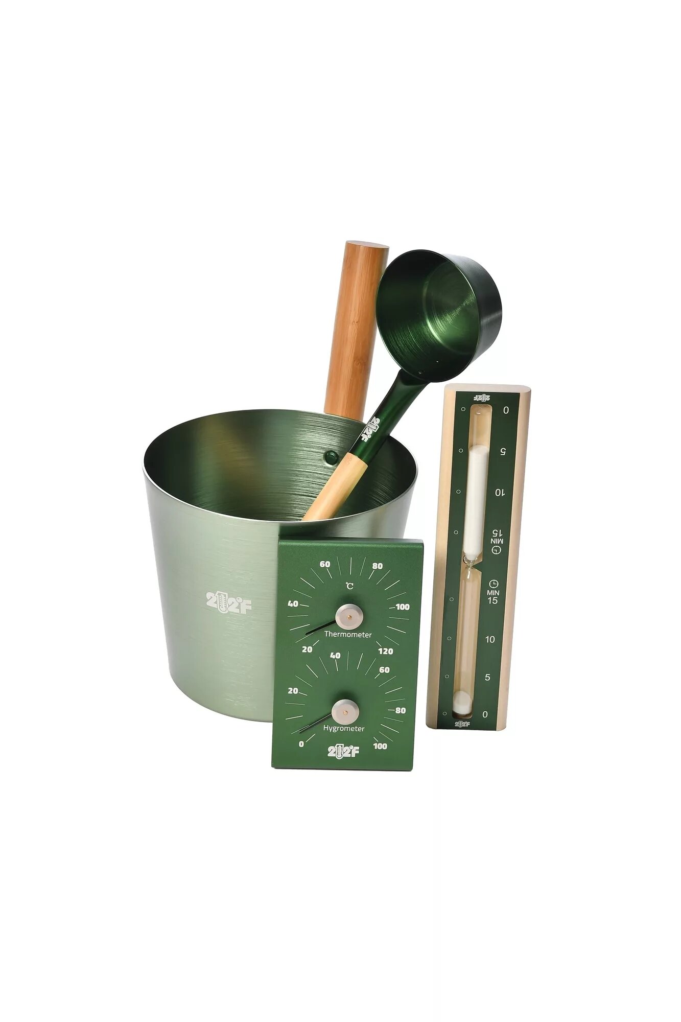 Набор OXY-M-4 DARK GREEN Ушат 5л + черпак 0,2л ручки бамбук + песочные часы